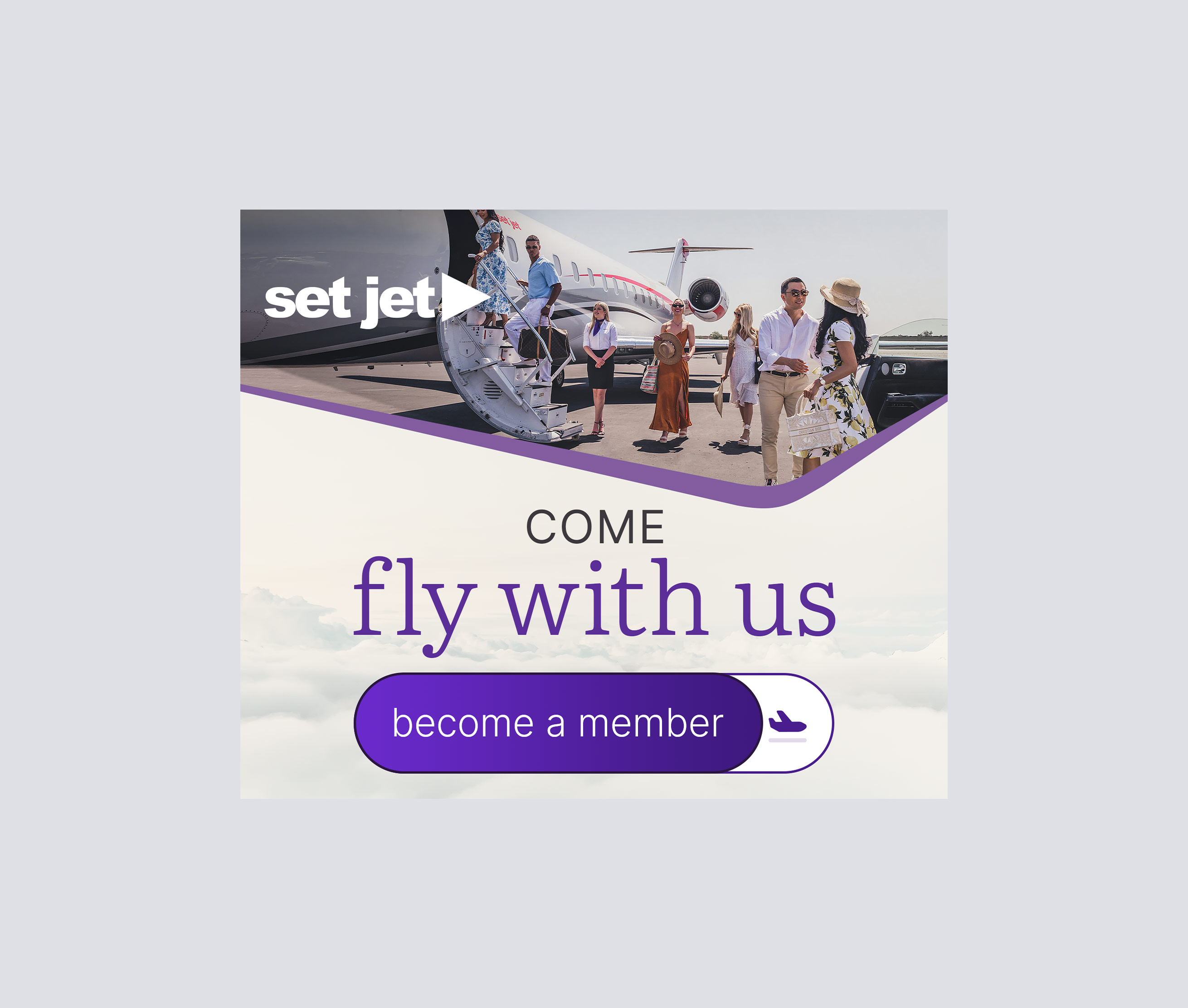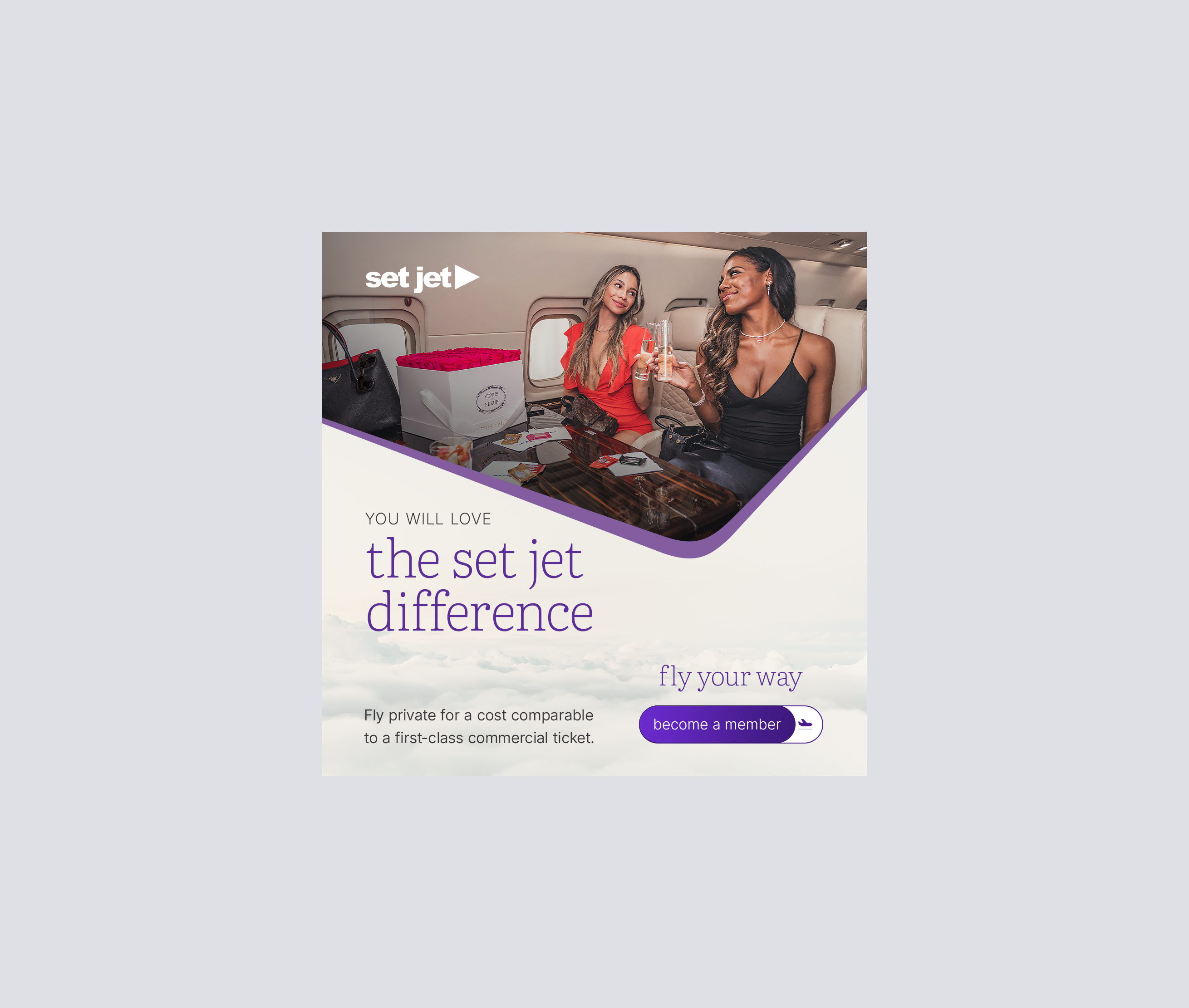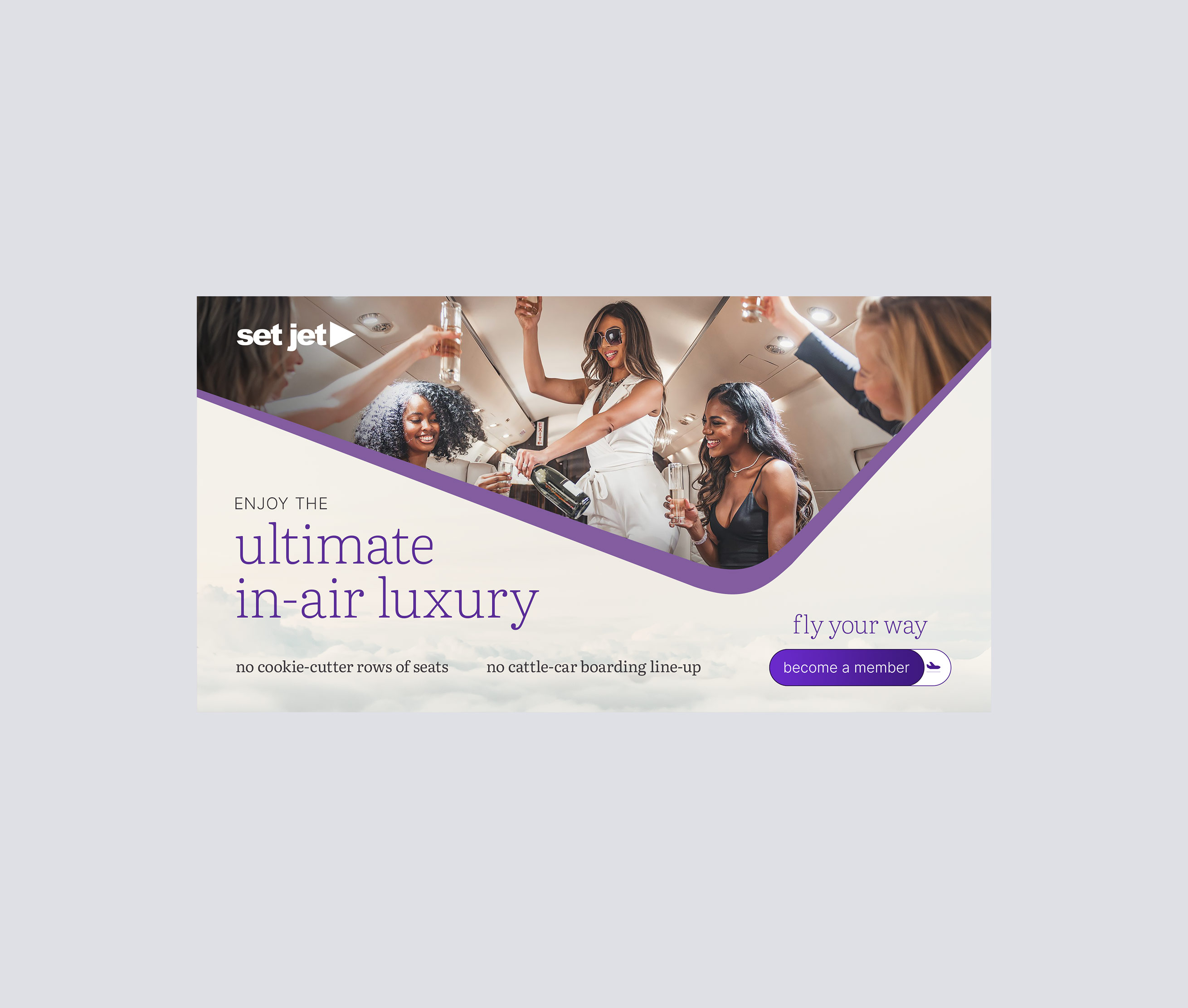 Set Jet, based in Scottsdale, is a membership-based private jet charter program that provides luxurious jet travel at an affordable price. Set Jet requested image options for a Google Responsive Display Ad campaign to help drive traffic to their membership signup form. These ads automatically resize themselves based on the size available for the advert.