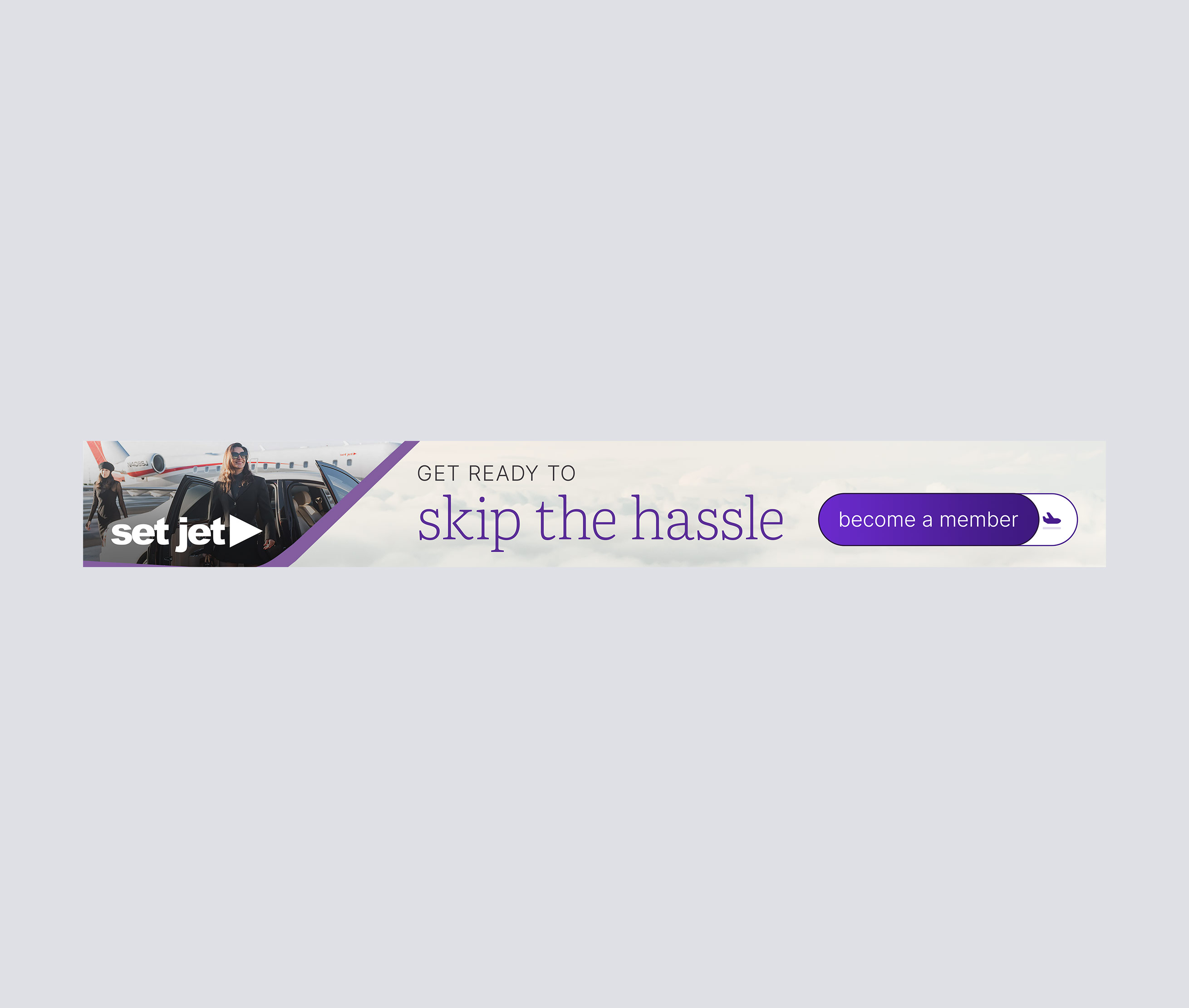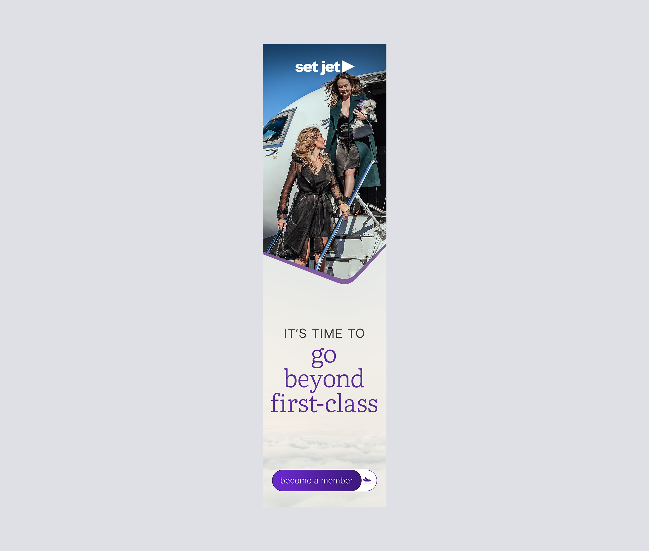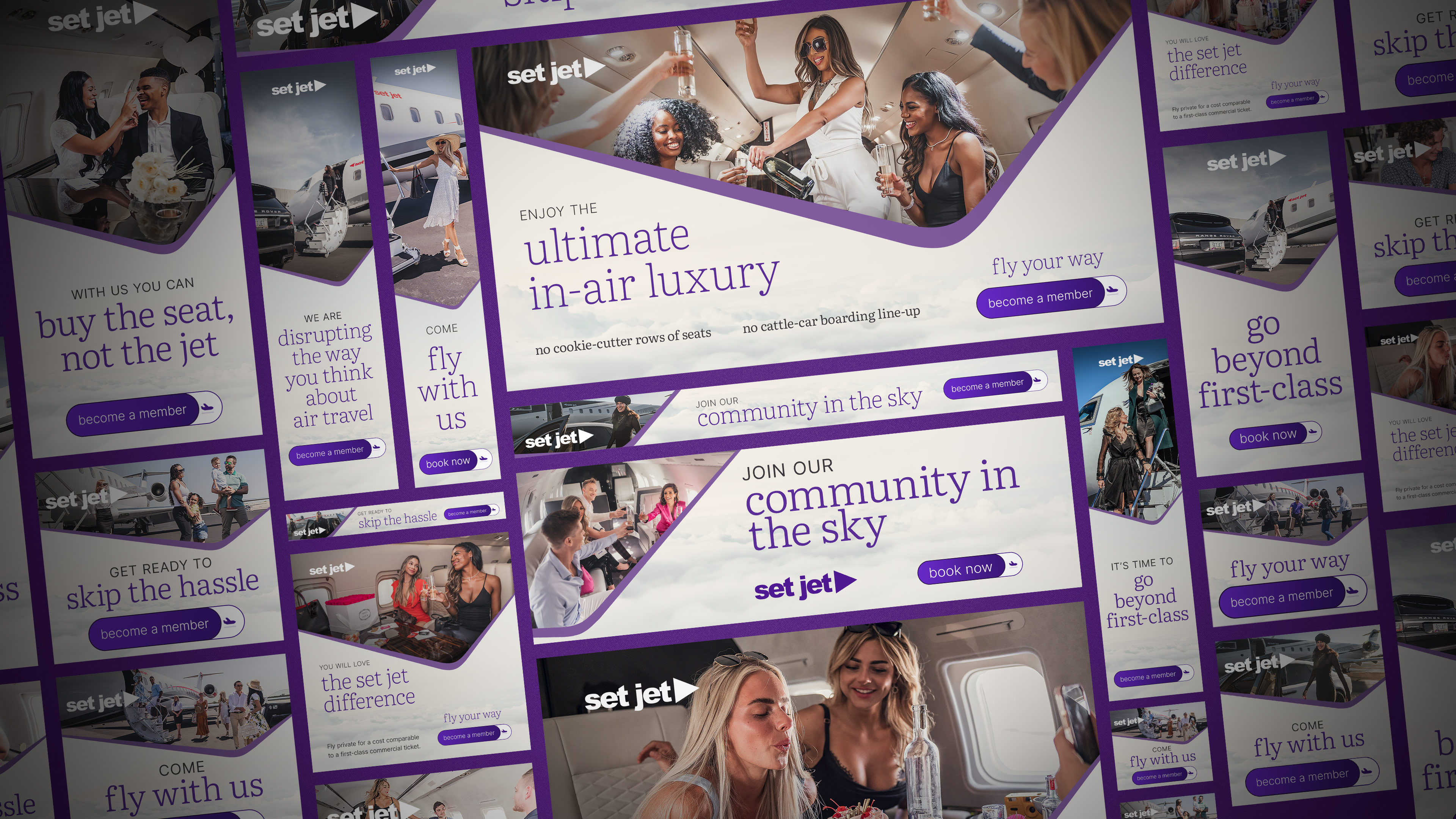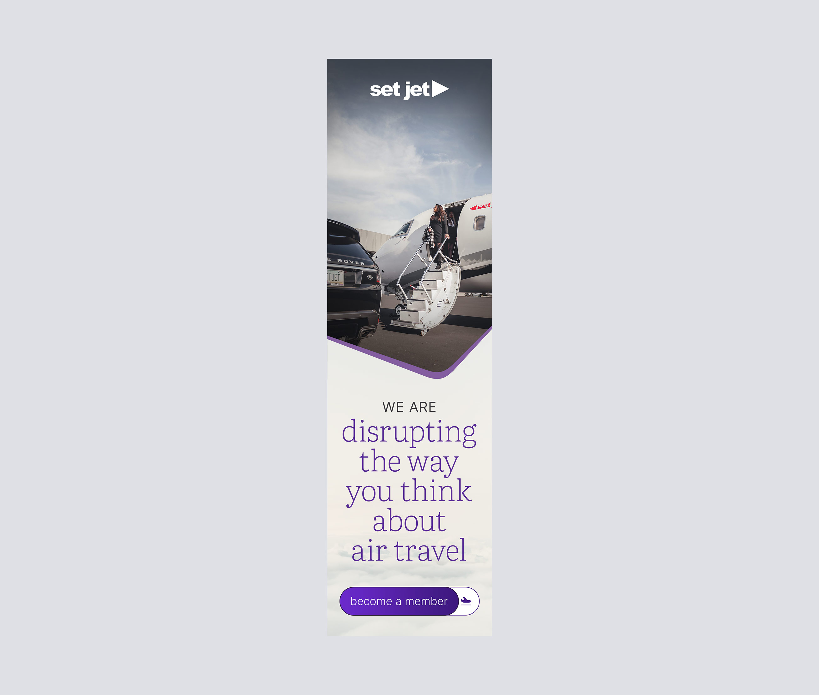 Set Jet, based in Scottsdale, is a membership-based private jet charter program that provides luxurious jet travel at an affordable price. Set Jet requested image options for a Google Responsive Display Ad campaign to help drive traffic to their membership signup form. These ads automatically resize themselves based on the size available for the advert.