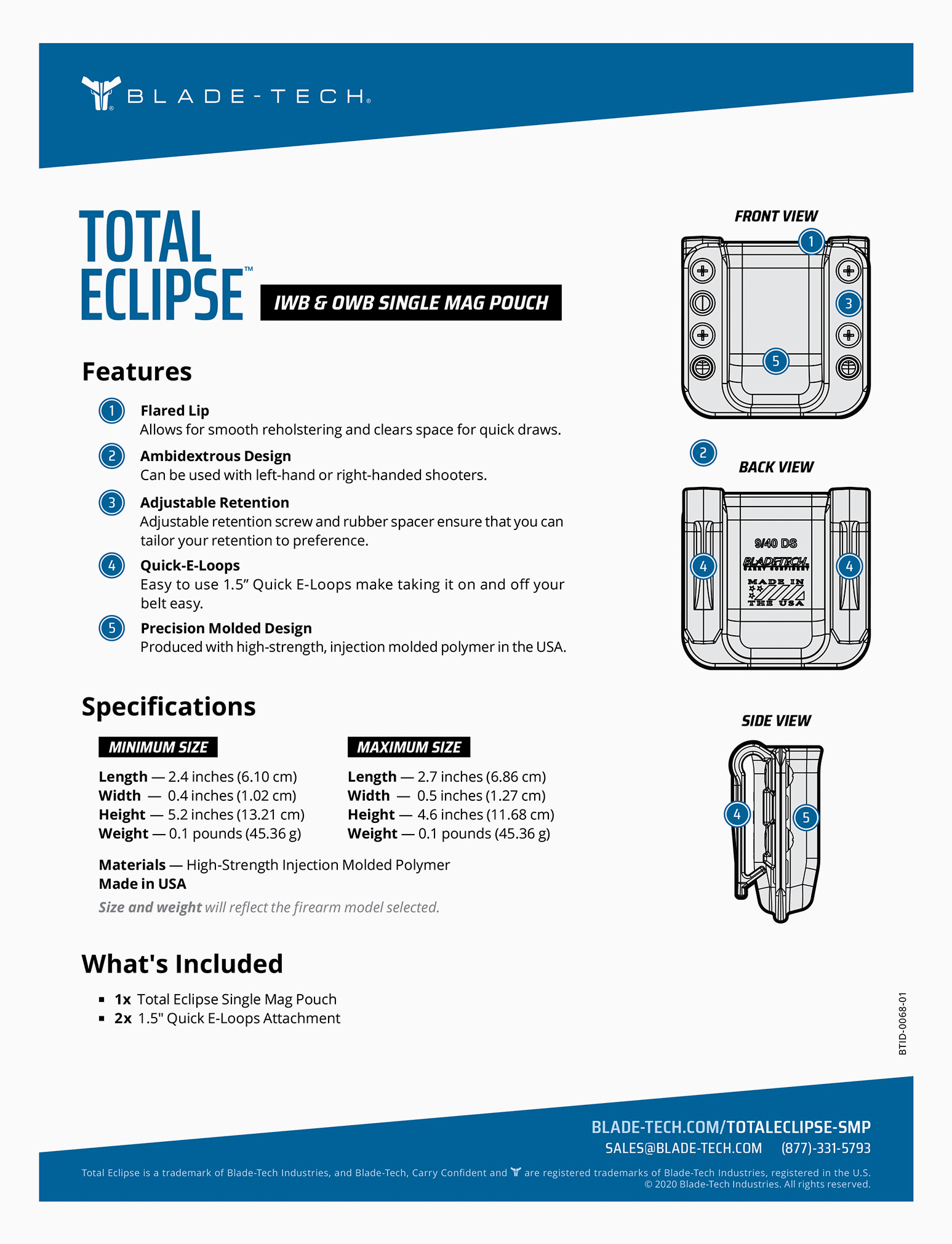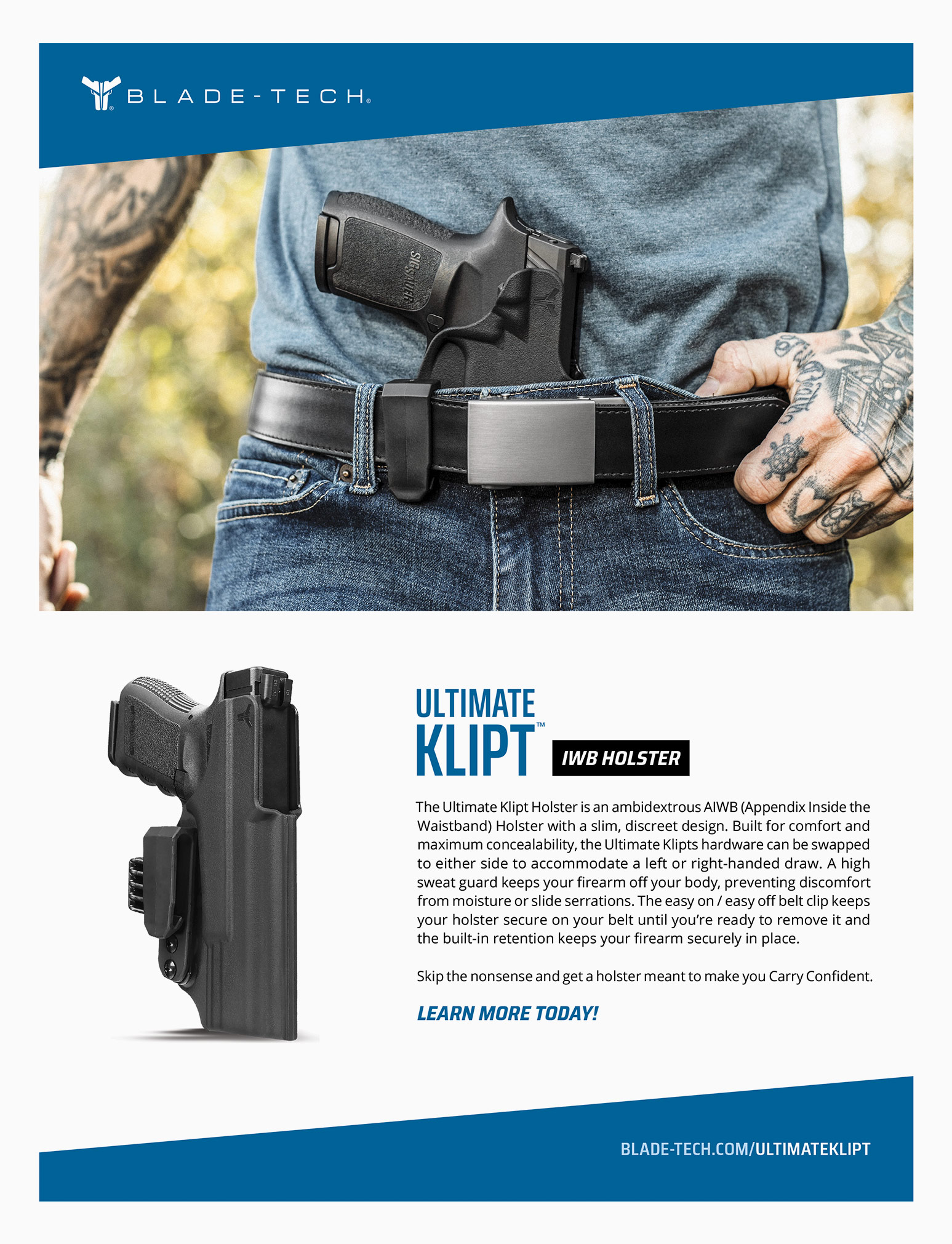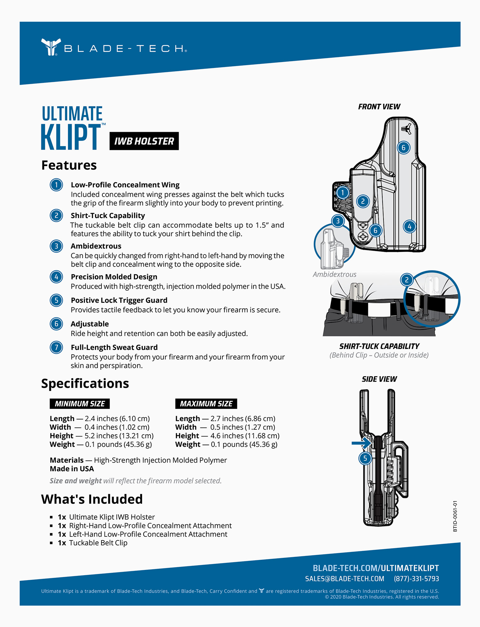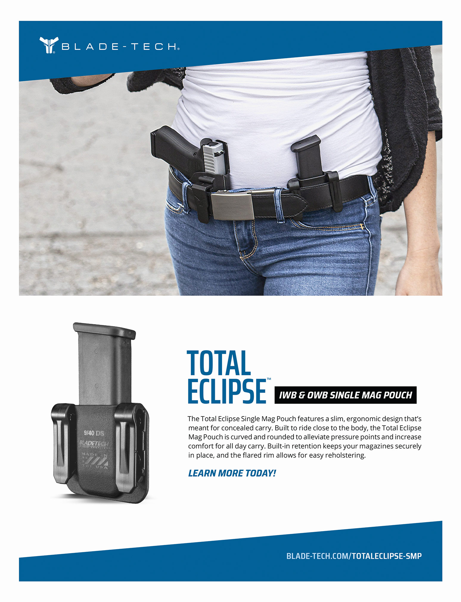 Blade-Tech Industries, based in the Cleveland metropolitan area, is a global manufacturer of carry gear for civilian, military, and law enforcement markets. The goal was to create a series of product cards to highlight all Blade-Tech products for use by distributors and government sales channels. The final deliverables would be both full-color printed and digital collateral.